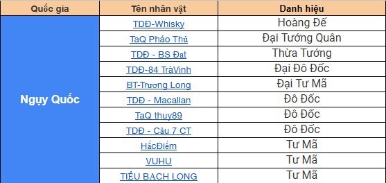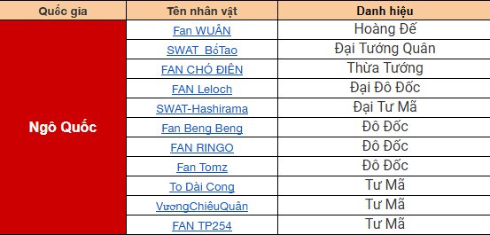 Chi tiết BXH Hoàng Đế cùng các vị trí danh hiệu khác xem tại đây: